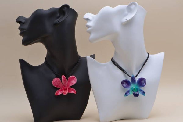Da es sich bei den Orchideen um Naturprodukte handelt, kann jedes Stück in Größe, Form und Farbe leicht variieren – jedes Schmuckstück ist somit ein einzigartiges Unikat.
