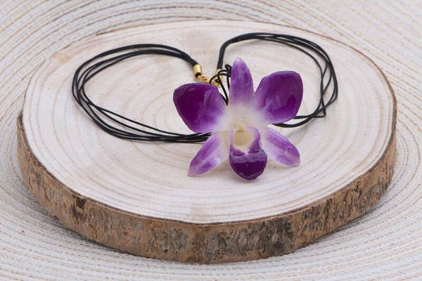 Elegante Halskette mit echter Orchidee in Lila Weiss