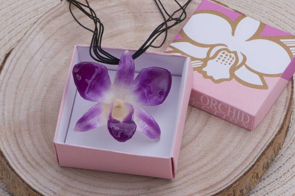 Da es sich bei den Orchideen um Naturprodukte handelt, kann jedes Stück in Größe, Form und Farbe leicht variieren – jedes Schmuckstück ist somit ein einzigartiges Unikat.