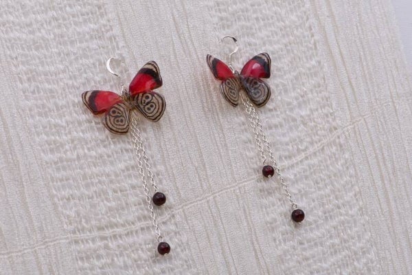 Wunderschöne Schmetterling-Ohrringe rot/schwarz/beigen