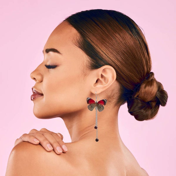 Der Schmetterling fasziniert durch seine Rot-, Schwarz- und Beigetöne und verleiht jedem Outfit einen Hauch von Raffinesse und Eleganz. Die Ohrhänger wiegen lediglich ca. 10 Gramm, sodass sie federleicht am Ohr baumeln und jedem Look einen stilvollen Akzent verleihen.