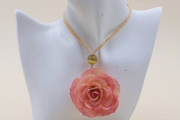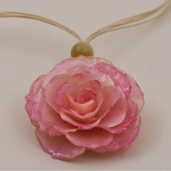 Zauberhafte Halskette mit echter Rosenblüte in Pink/Rosa