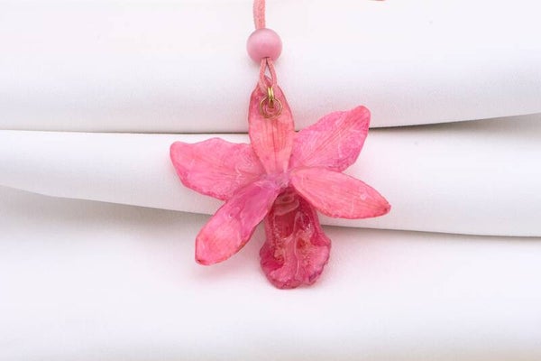 Halskette mit einer echten Orchideenblüte (Cattlaya) in Pink