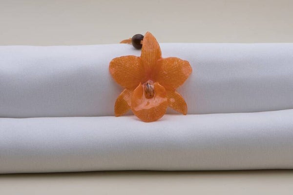 Halskette mit einer echten Orchideenblüte (Cattlaya) in Orange